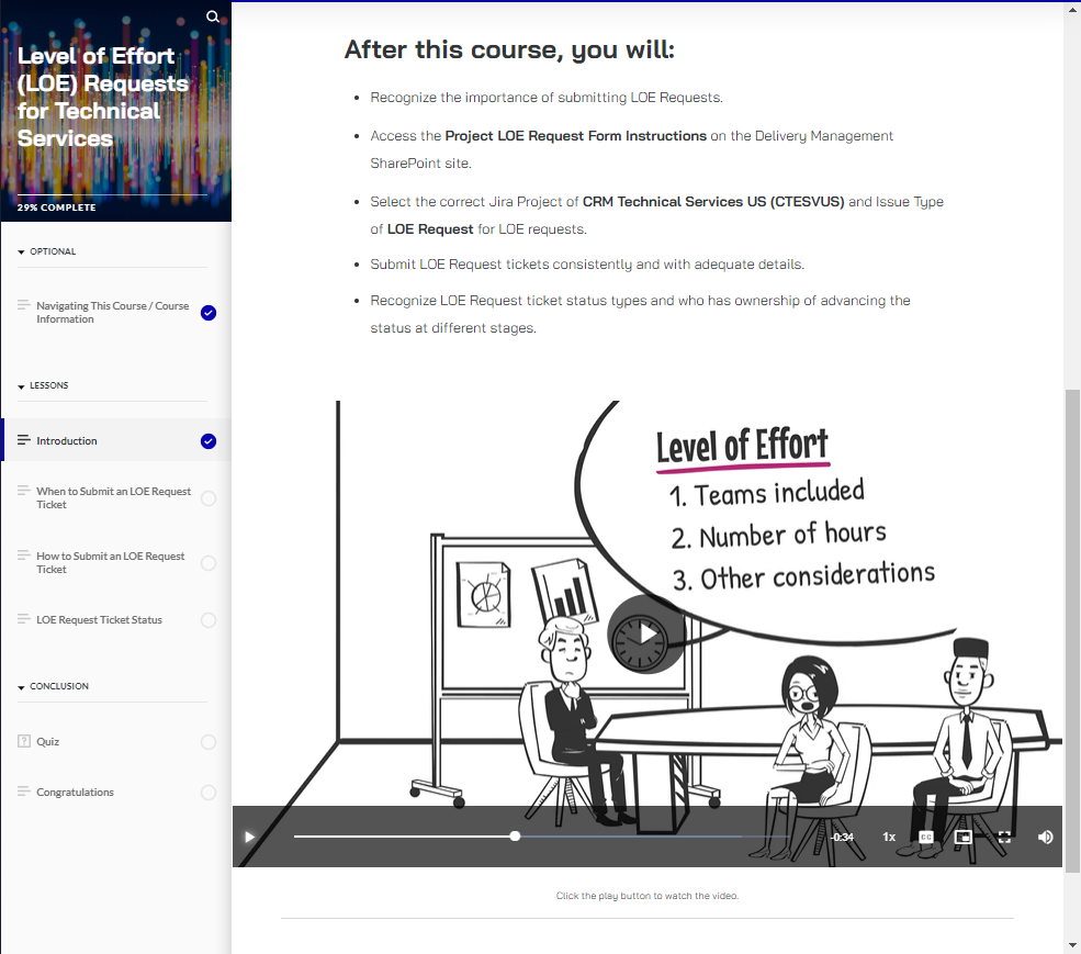 This eLearning was created to introduce Zeta Global employees to a new process. It included an instructional job aid, an animated Vyond introduction video, and screen recordings done in Camtasia.